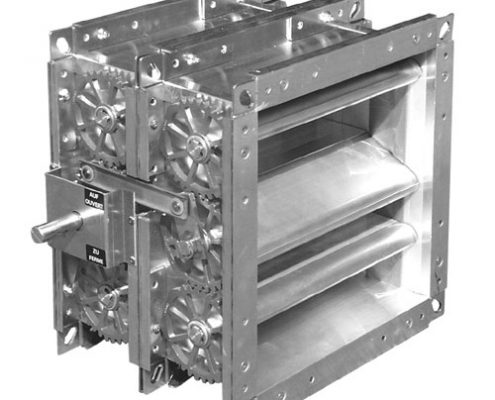 Die RHOMBOID Luftregeleinheit mit Misch- und Absperrfunktion ist ein Gehäuse mit beidseitig angeformten Kanalanschlussflanschen und eingebauten verstellbaren Verstellkörpern, die über ein Zahnrad/Gestängesystem miteinander verbunden sind und mit Hilfe eines Stellmotors oder eines Handstellers von außen über eine Antriebswelle verstellt werden können.